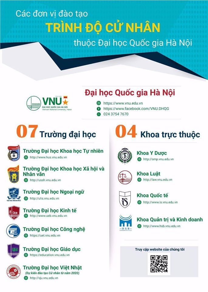 Tuyển sinh ĐHCQ 2020: ĐHQGHN có 11 đơn vị đào tạo hệ cử nhân